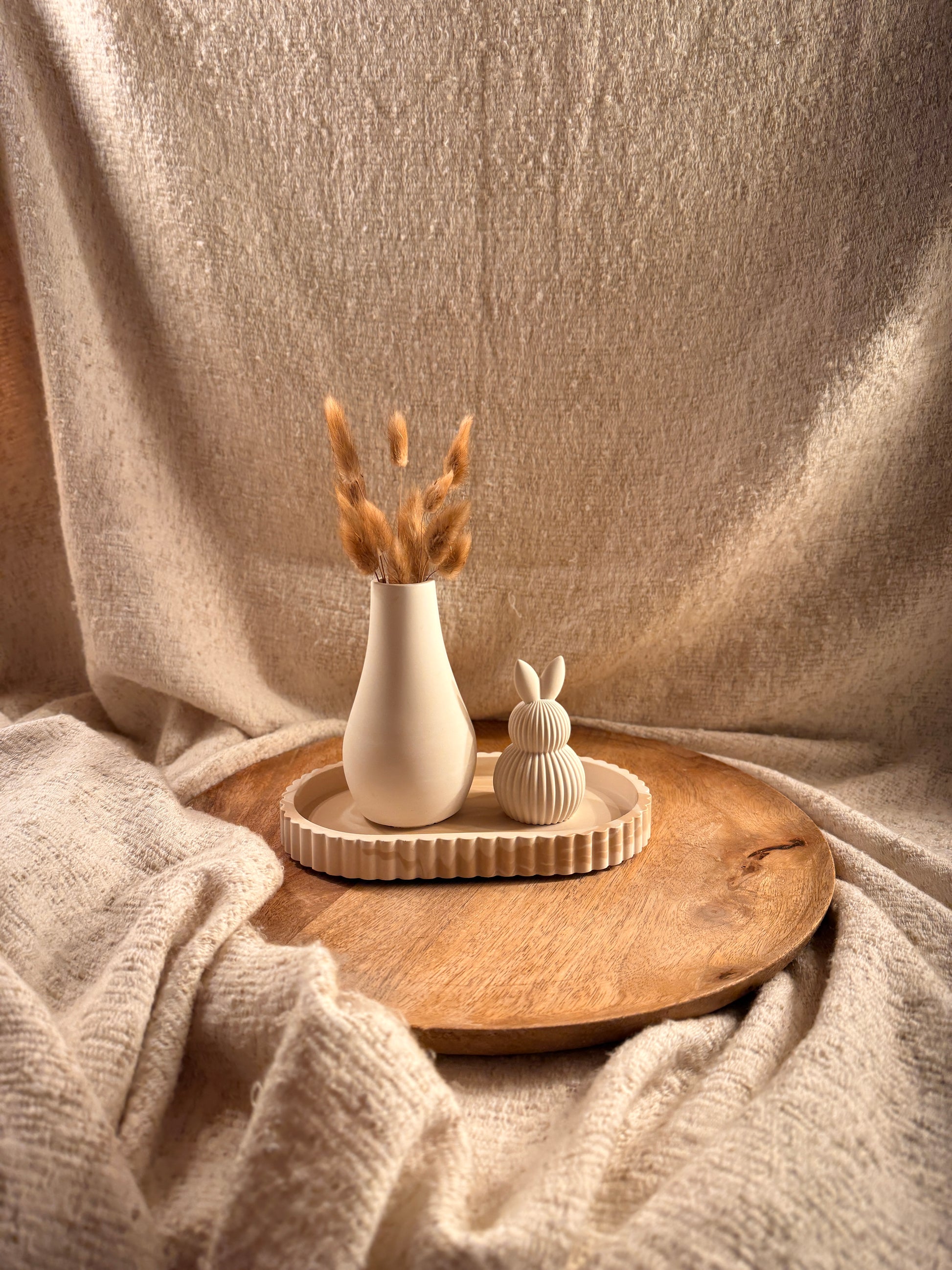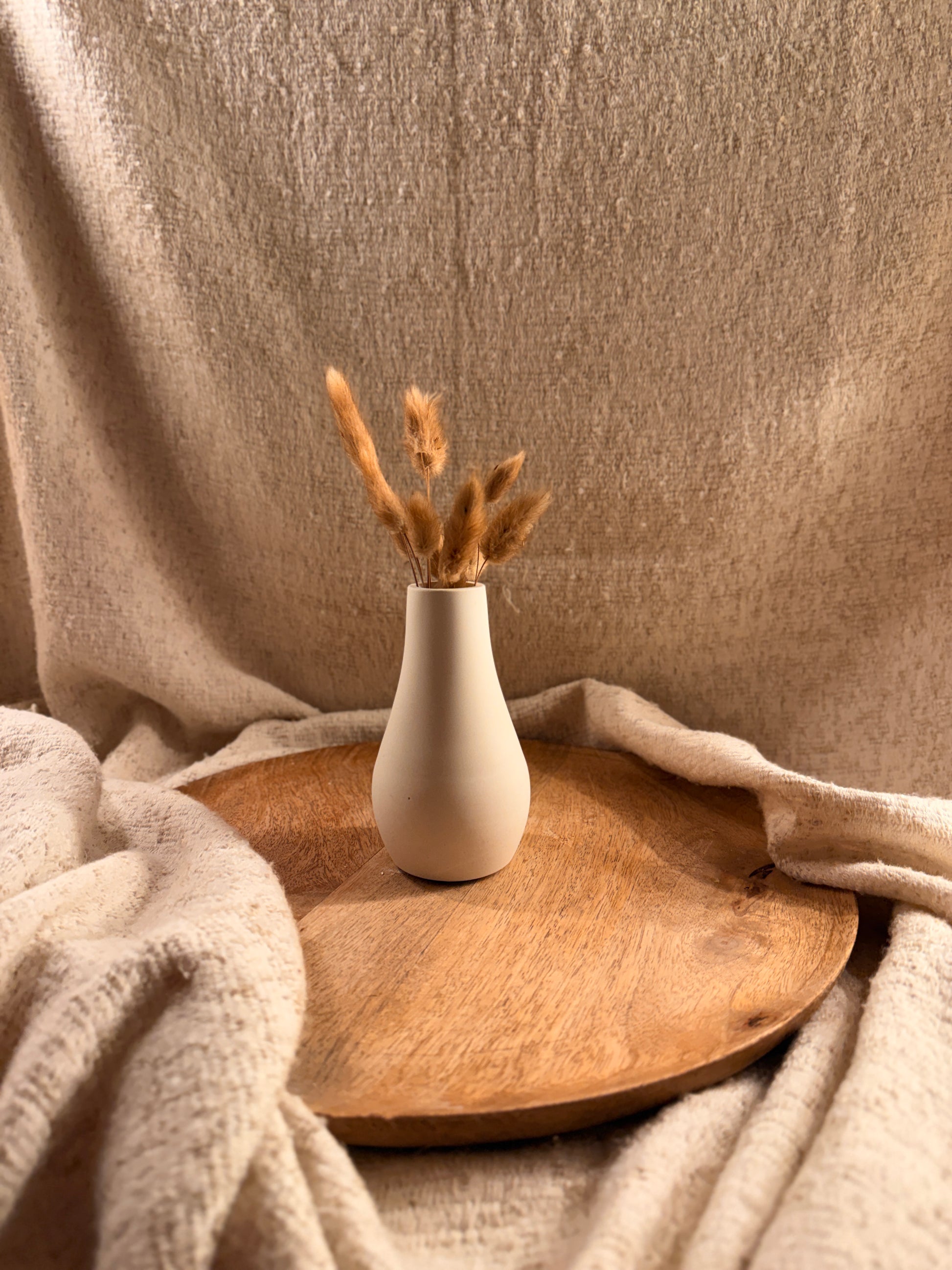 Diese schlichte Dekovase wird mit ganz viel Liebe von Hand gefertigt und überzeugt durch ihre zeitlose, elegante Form. Sie eignet sich perfekt für Trockenblumen und bringt eine ruhige, natürliche Atmosphäre in dein Zuhause – ob auf dem Tisch, dem Sideboard oder im Regal.