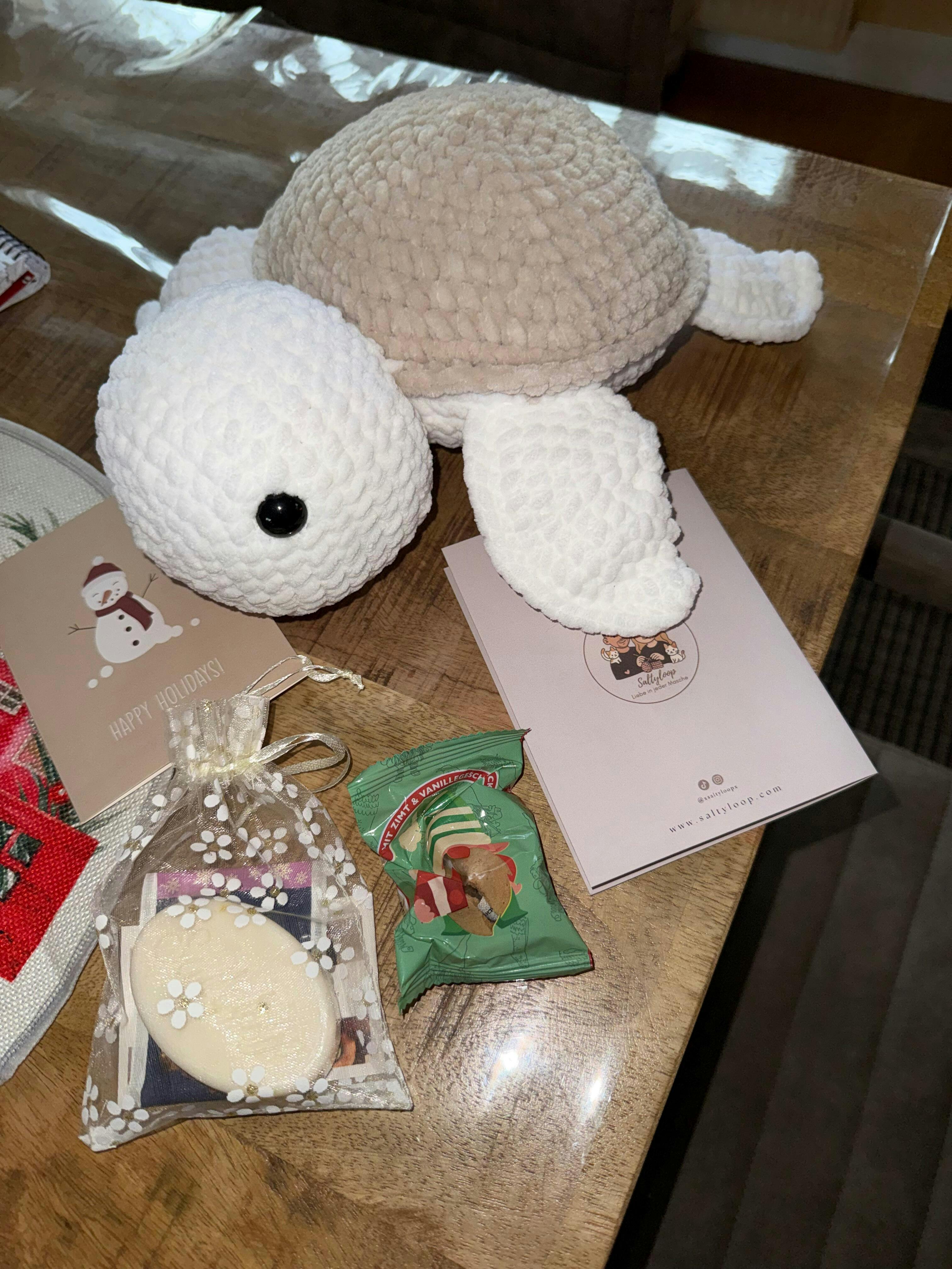 Diese liebevoll gehäkelte Schildkröte ist das perfekte Kuscheltier und bringt sofort Gemütlichkeit ins Zuhause. Dank des weichen Chenille-Garns ist sie besonders kuschelig und eignet sich ideal zum Knuddeln, Dekorieren oder Verschenken.