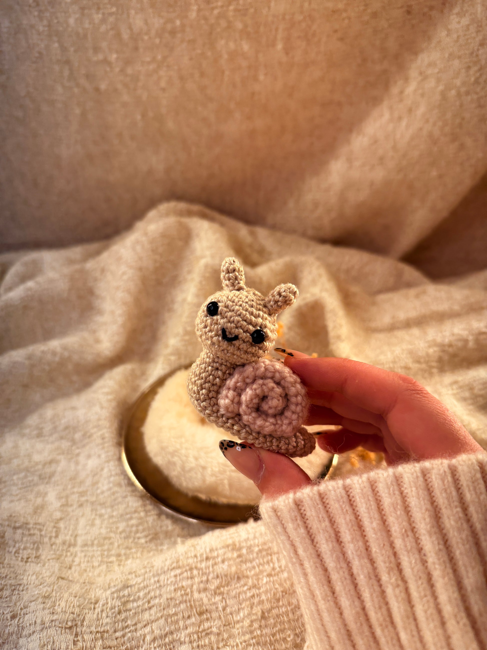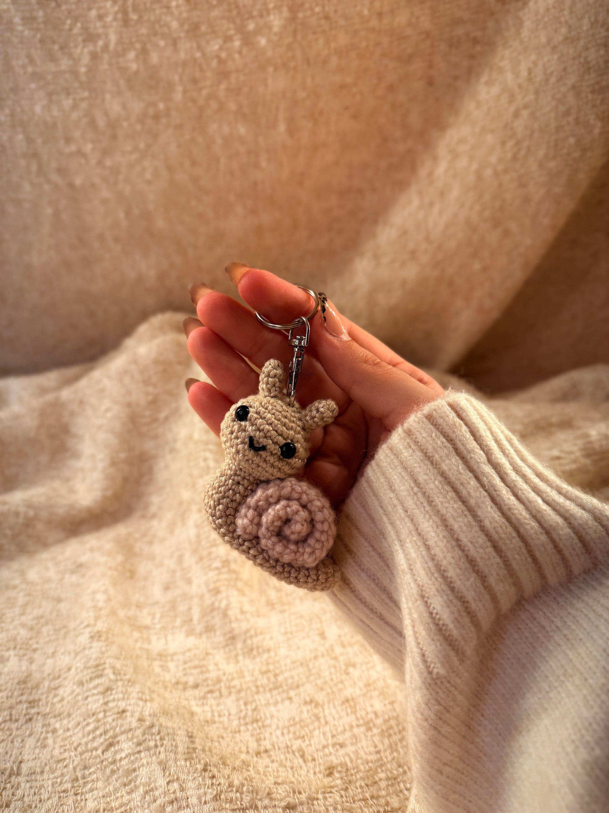 Sag Hallo zu Garry, der kleinen Schnecke mit dem großen Charme! 🐌 Mit seinem fröhlichen Lächeln und dem liebevoll gehäkelten Häuschen bringt Garry sofort gute Laune – egal, ob auf dem Schlüsselbund, an der Tasche oder einfach als niedliche Dekoration.