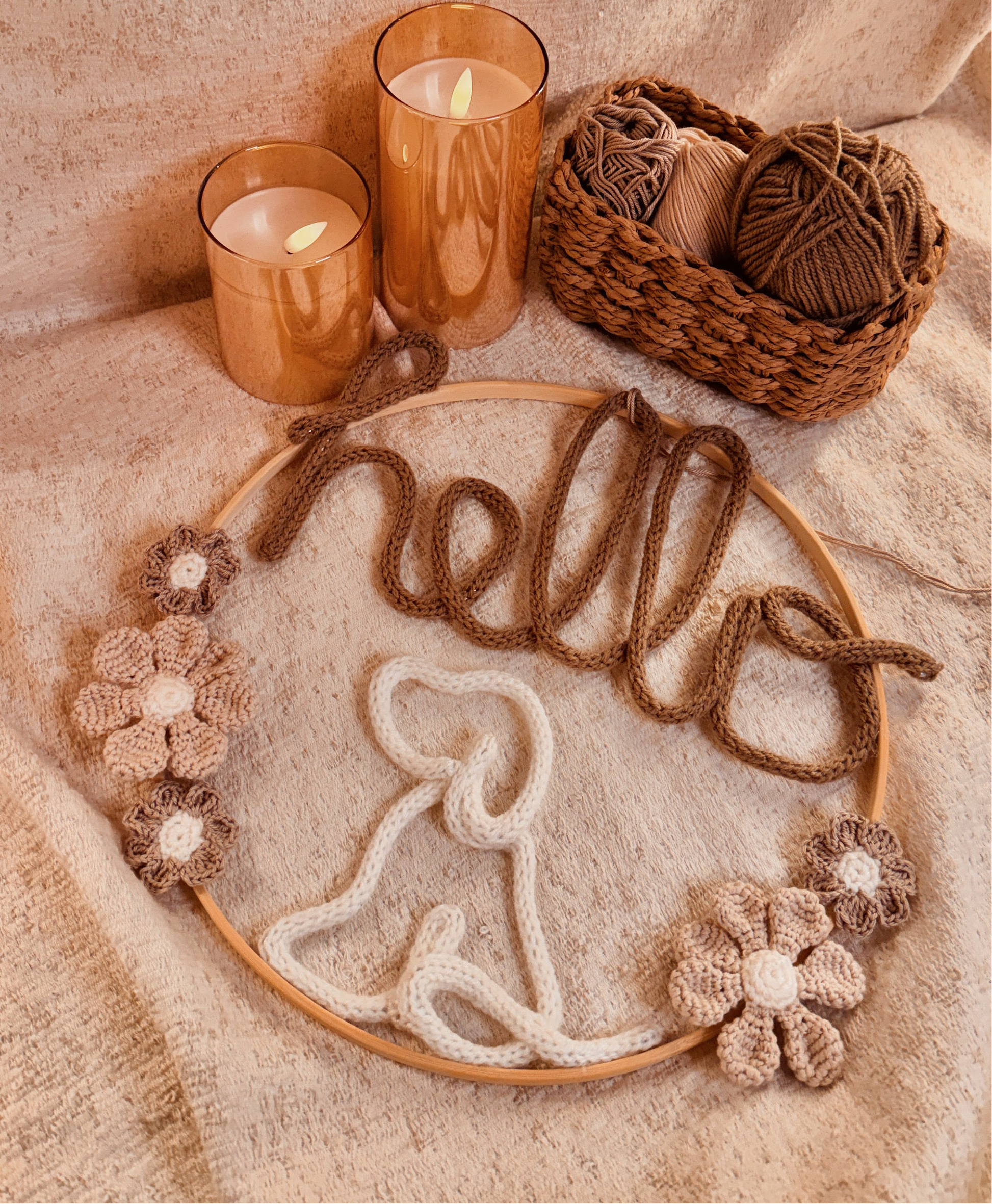 Dieser liebevoll gefertigte Türkranz ist ein ganz besonderer Blickfang für dein Zuhause. Mit dem Schriftzug „hello“, verspielten Blumen und einer süßen Hunde-Silhouette verleiht er jeder Tür, Wand oder jedem Raum eine warme und einladende Atmosphäre. Perfekt als Dekoration für dein Zuhause oder als Geschenkidee für Hundeliebhaber. 🐾