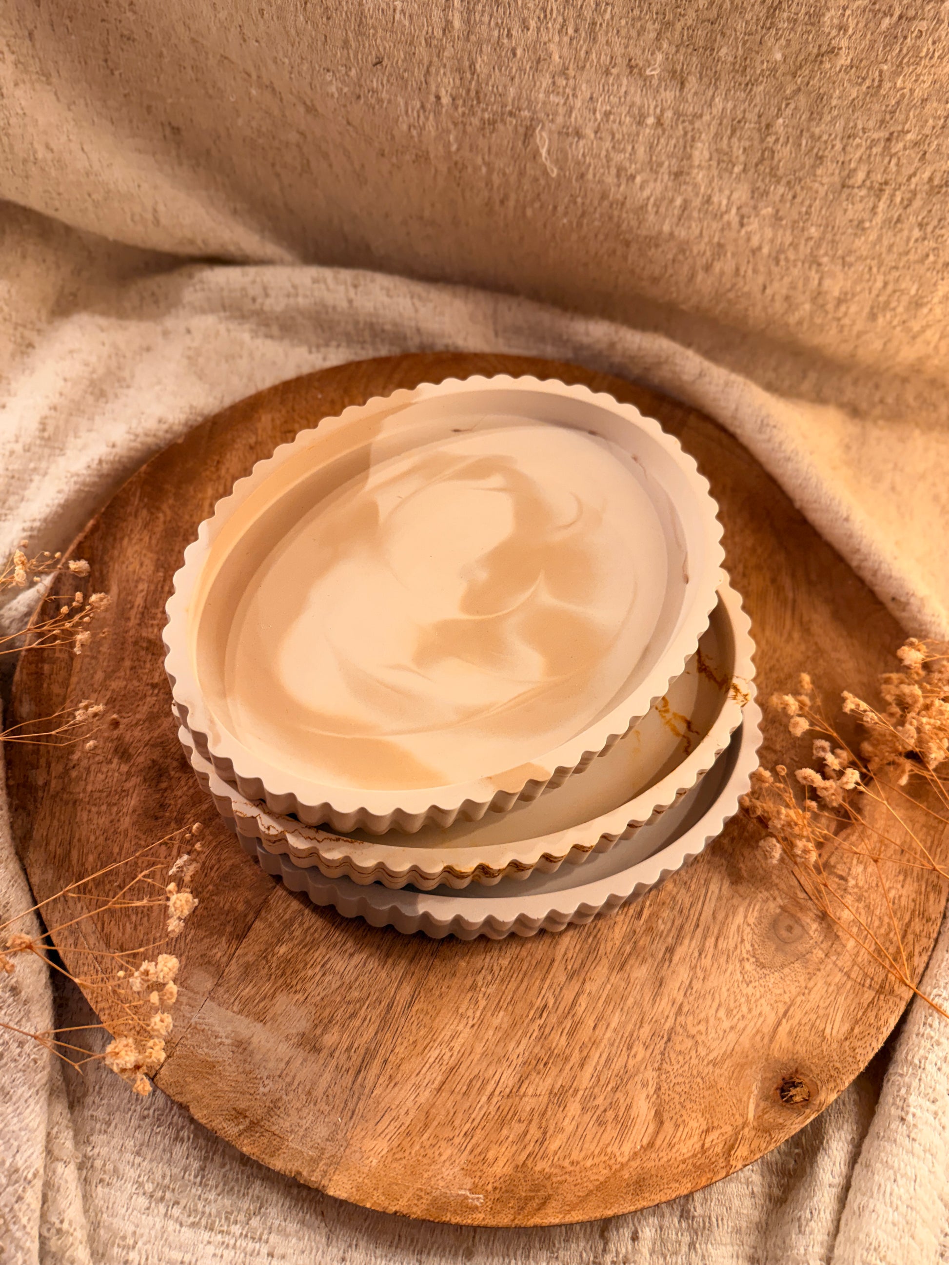 Diese handgefertigte Dekoschale überzeugt durch ihre elegante Wellenform und den sanften Marmoreffekt. Sie ist vielseitig einsetzbar und eignet sich perfekt als stilvolle Ablage für Schmuck, Schlüssel, Kerzen oder kleine Deko-Elemente. Durch ihr ruhiges, zeitloses Design fügt sie sich harmonisch in jedes Zuhause ein.